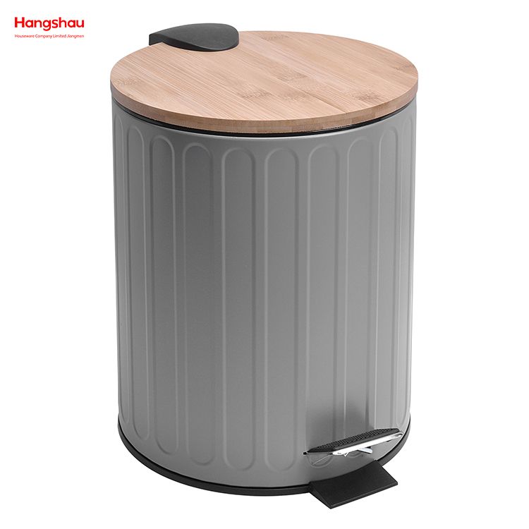 5L المنزلية شريط دواسة سلة النفايات الخيزران صناديق الغبار الحمام سلة المهملات المعادن موردن نمط مزبلة سلة المهملات غطاء الخيزران مسحوق الطلاء لسلة المهملات في الأماكن المغلقة